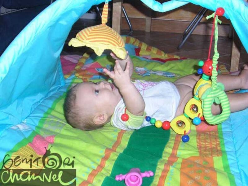 - Différentes positions de jeu : Le tapis d’éveil peut être utilisé dans différentes positions : allongé sur le ventre ou sur le dos, pour les bébés de 0 à 7 mois, assis, pour les bébés à partir de 8 mois, debout, pour les bébés de plus de 10 mois. Le produit s’adapte donc au développement de l’enfant et permet une utilisation prolongée de la structure. En effet, en modifiant simplement la hauteur du tapis d’éveil, ou en le supprimant complètement, il sera possible d’offrir au bébé la possibilité d’interagir avec les jouets et les peluches de différentes manières.